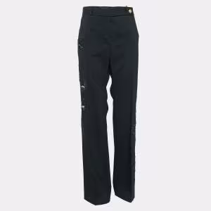 بنطلون فيرساتشي صوف مزيج أسود مفصل مقاس صغير (سمول)