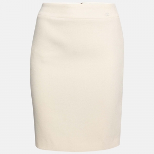 تنورة مستقيمة شانيل صوف كريمي مقاس صغير - سمول