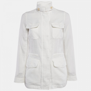 جاكيت بسحاب قماش كتان وقطن أزرق لورو بيانا مقاس صغير (سمول)