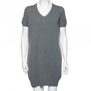 فستان سويتر لورو بيانا تريكو كشمير رصاصي رقبة حرف في مقاس وسط ( ميديوم )