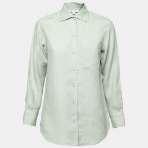 توب لورو بيانا كشمير أزرق مخضر برقبة مرتفعة بأكمام طويلة مقاس صغير ( سمول )