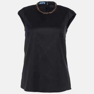 قميص برادا قطن أبيض جيب مزين بأزرار أمامية بلا أكمام مقاس وسط ( ميديوم )