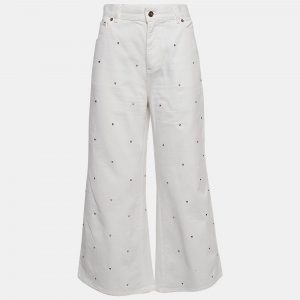 بنطلون جينز فالنتينو ساق عريضة دينيم أسود فحمي صغير مقاس الخصر 27 بوصة