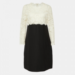 فستان فالنتينو حرير وصوف أسود وأبيض بفيونكة مزينة M
