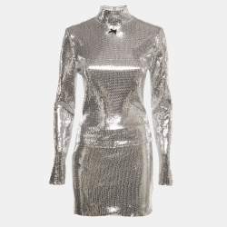 فستان سهرة هيرفي ليجري ميتاليك رمادي بأكمام طويلة صغير