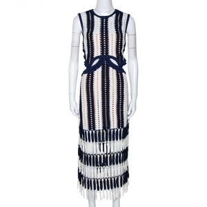 فستان سيلف بورتريت سويت هارت ازايليا مطرز أزرق كحلي و أبيض M