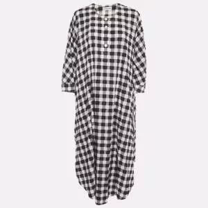 فستان سونيا ريكيل قطن بكاروهات أسود/أبيض طويل مقاس واحد