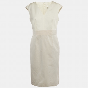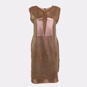 فستان ميني موسكينو كوتور كريب ودانتيل أسود/بني بتفاصيل فيونكة مقاس كبير - لارج