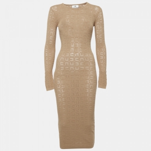 فستان قصير هيرفي ليجي كارلي تريكو ستريتش كريمي وبني محمر بنمط صغير جداً
