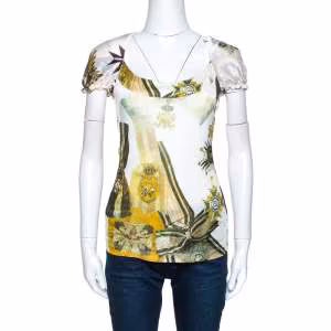 فستان هيرمس حرير بطبعة صباحية لون عاجي مقاس صغير - سمول