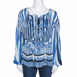 \جاكيت لوي فيتون حرير وقطن مخطط متعدد الألوان بصدرية مزدوجة مقاس متوسط (ميديوم)