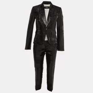 طقم توب وبنطلون حرير بطباعة شعار باللون الأسود من ستيلا مكارتني مقاس صغير (سمول)