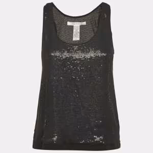 توب ريبيكا تايلور مرصع كريستال بلا أكمام حرير أزرق كحلي مقاس وسط (ميديوم)