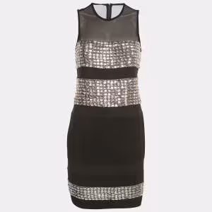 فستان روبerto كافالي جيرسيه أسود مزخرف على كتف واحد قصير مقاس متوسط