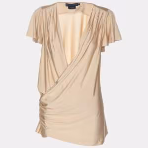 توب إمبوريو أرماني قماش كريب مطاطي وردي بأكمام قصيرة مقاس كبير (لارج)
