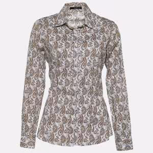 قميص إيترو أزرار أمامية قطن طباعة مخططة وبيزلي متعدد الألوان S