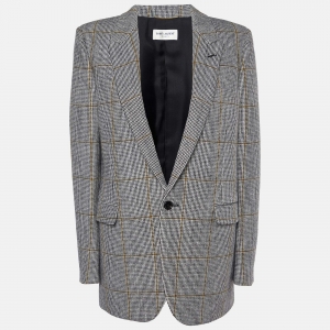 بلوفر سان لوران باريس كاميلي بني مضلع ياقة دائرية كبير