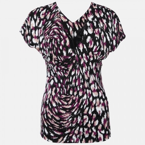 فستان ميني بقصة مفتوحة روبرتو كافالي جيرسي طبعة زهرية وردي مقاس متوسط (ميديم)