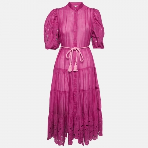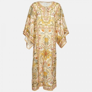فستان قصير من الحرير جاكار أصفر بشعار سي أتش كارولينا هيريرا - مقاس صغير