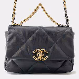 حامل بطاقات شانيل 19 مع سلسلة جلد خروف