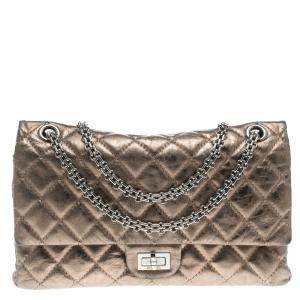 حقيبة شانيل ريشيو 2.55 كلاسيك 227 جلد لامع مبطن بني بقلاب