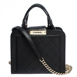 حقيبة باولر شانيل جلد كافيار مبطنة مربعة صغيرى