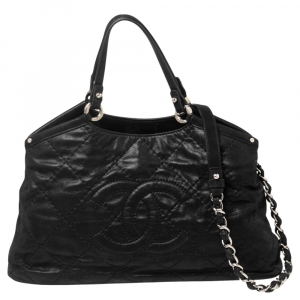 حقيبة يد توتس شانيل غراند شوبر جلد كافيار مبطن أسود