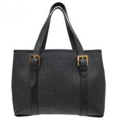حقيبة يد توتس شوبر فندي باغيت رول مطبوعة جلد لامع وكانفاس زوكا مقوى أسود/توباكو