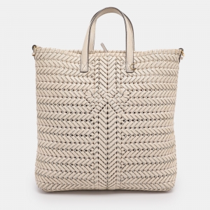 حقيبة انيا هيندمارش "نيسون" جلد مجدول فضي ميتاليك