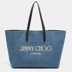 حقيبة تسوق إيترو جلد وقماش كانفاس بطبعة بيزلي أزرق/أبيض