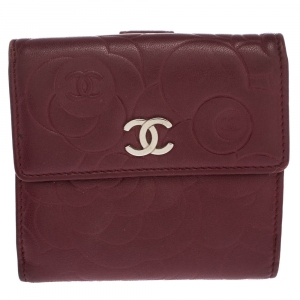 محفظة شانيل فرنش نقش كاميليا جلد حمراء داكنة