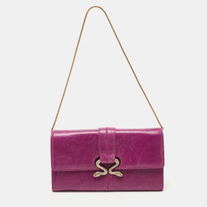 محفظة بسلسلة روبerto cavalli جلد وردي مرصعة