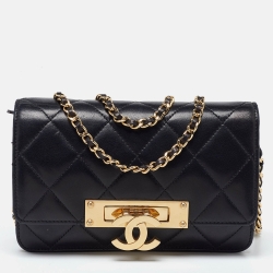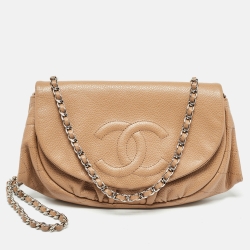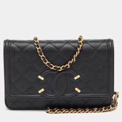 محفظة شانييل غولدن كلاس سلسلة متصلة جلد كافيار مبطن أزرق بحري