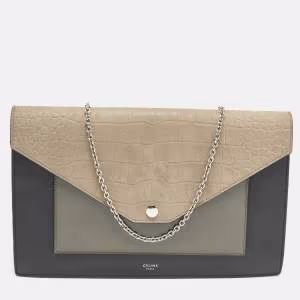 حقيبة كلتش سيلين سلسلة و جيب مغلف سويدي و جلد ثلاثي اللون بنقش جلد التمساح