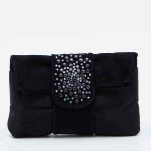 حقيبة كلتش جورجيو أرماني سويدي وساتان أسود مزخرف