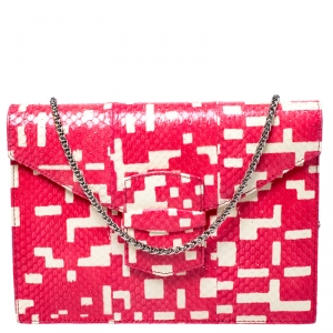 حقيبة كلتش اوسكار دي لا رينتا جلد ثعبان فضي منقوشة flap