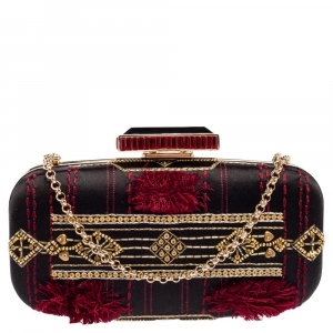 حقيبة كلتش أوسكار دي لارينتا مزخرف ترتر ساتان أسود