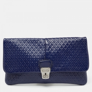 حقيبة كلتش تودز جلد منقوش لامع بالشعار أزرق قلاب بقفل دوار