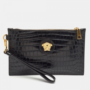 حقيبة كلتش فيرساتشي غطاء ميدوسا جلد أسود