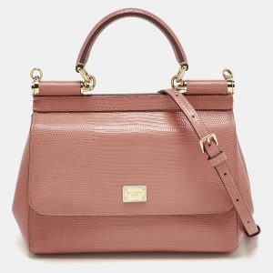 حقيبة دولتشي أند غابانا لوشيا جلد نقشة السحلية وردي بيد علوية