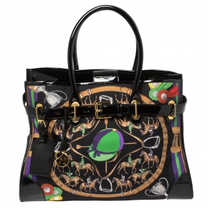 حقيبة يد رالف لورين إبزيم جلد لامع و كانفاس مطبوع أسود