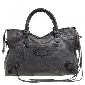 حقيبة يد بالنسياغا أرجي أتش سيتي جلد رصاصي داكن