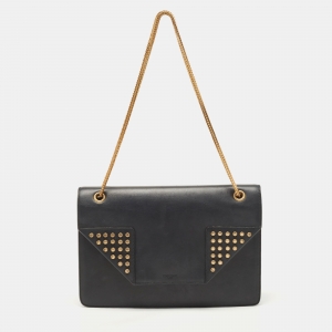 حقيبة كروس أوف وايت مشبك ملف منحوت جلد أسود