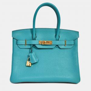 حقيبة هيرمس بيركين 2016 كلمنس جلد بلو باو معادن ذهبية 30