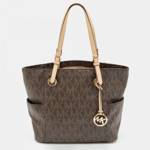 حقيبة يد توتس مايكل مايكل كورس جيت سيت جلد وكانفاس مقوى بشعار الماركة بني/بيج