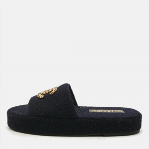 حذاء لوفرز شانيل دينم أزرق كحلي بقفل دوار CC مقاس 36