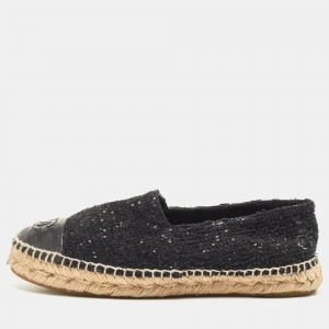 صندل كعب شانيل جلد مبطن أسود مقاس 35