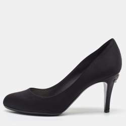 حذاء كعب عالي شانيل مقدمة مدورة كعب CC ساتان أسود مقاس 38.5