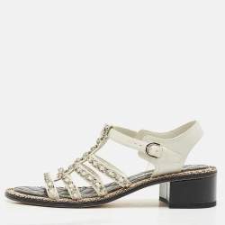 صندل شانيل مزين بورق معدني ملون جلد لامع وأربطة مقاس 37.5