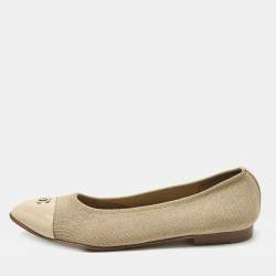 حذاء باليرينا فلات شانيل بيج/أسود نسيج محبوك وشبكي مقاس 38